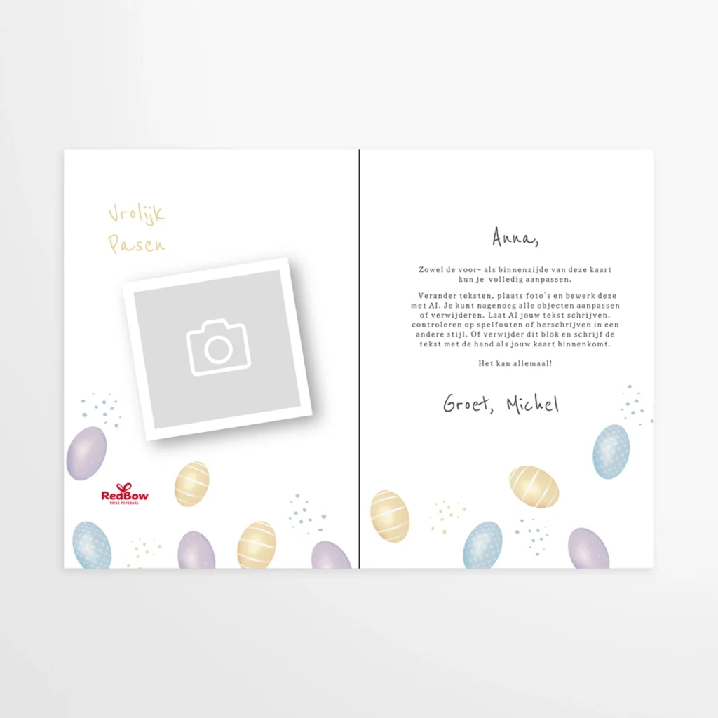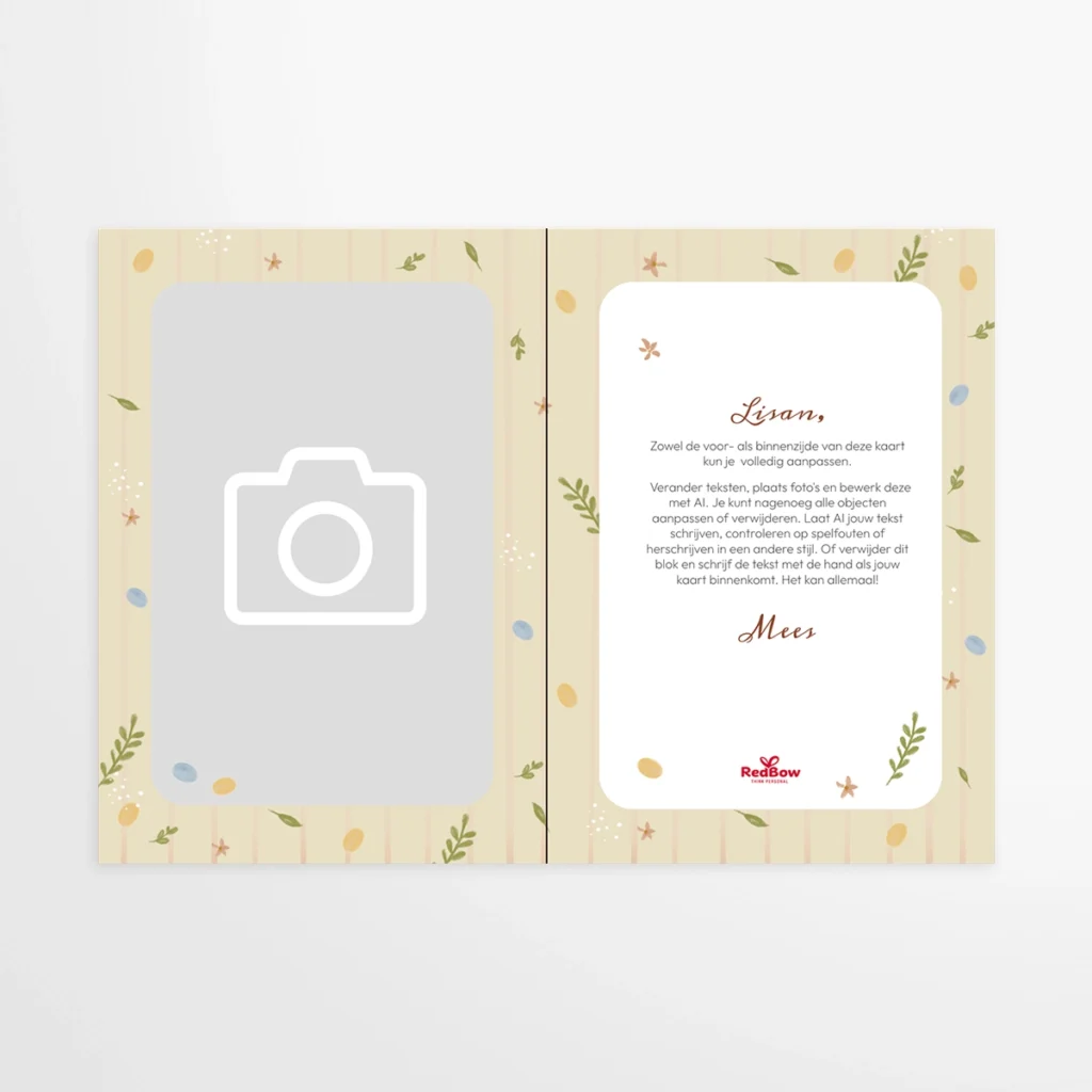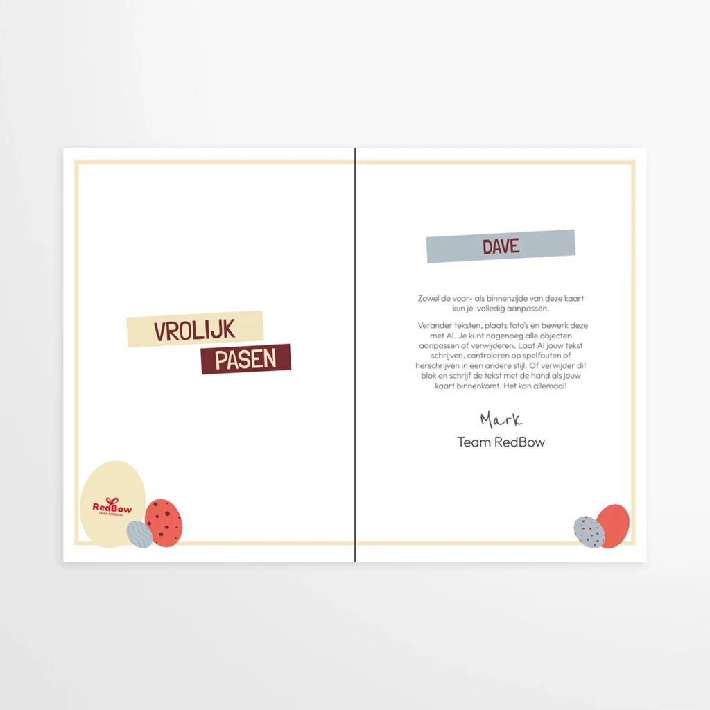 RedBow.com is onze marktplaats waar wij samen met onze partners een breed palet aan personaliseerbare artikelen aanbieden. RedBow is gestart eind 2025 en op dit moment bestaat het aanbod uit kwalitatieve personaliseerbare chocolade en drukwerk, in de vorm van wenskaarten.